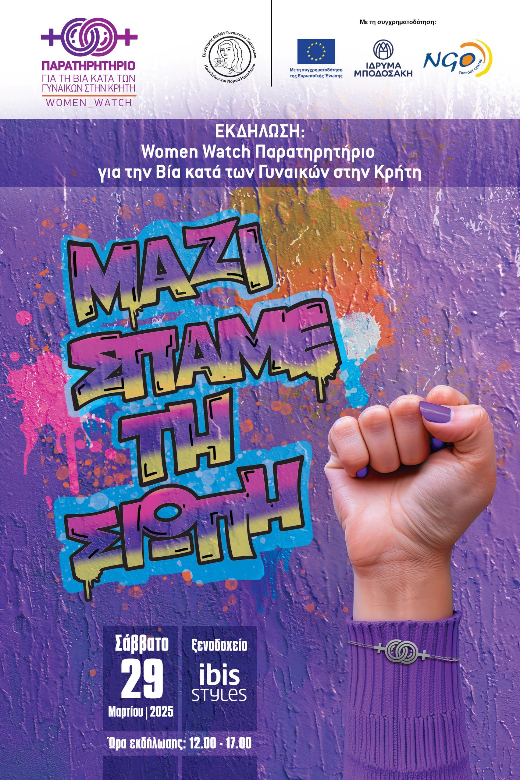 Το έργο Παρατηρητήριο Για τη Βία Κατά Των Γυναικών στην Κρήτη– WOMEN’S WATCH υλοποιείται στο πλαίσιο του προγράμματος BUILD, με φορέα υλοποίησης τον Σύνδεσμο Μελών Γυναικείων Σωματείων Ηρακλείου και Ν. Ηρακλείου . Το πρόγραμμα «Building a robust and democratic civic space» (BUILD) έχει ως στόχο την προστασία, την προώθηση και την ευρεία αναγνώριση των θεμελιωδών δικαιωμάτων και αξιών της Ε.Ε., μέσω της στήριξης οργανώσεων της Κοινωνίας των Πολιτών (OKοιΠ) στην Ελλάδα και την Κύπρο και της ενίσχυσης των ικανοτήτων και της βιωσιμότητάς τους. Το BUILD συγχρηματοδοτείται από την Ευρωπαϊκή ‘Ενωση, μέσω του προγράμματος Citizens, Equality, Rights and Values (CERV), το Ίδρυμα Μποδοσάκη και το Κέντρο Στήριξης ΜΚΟ Κύπρου με συνολικό ποσό επιχορήγησης €2,9 εκ. Συντονιστής του BUILD είναι το Ίδρυμα Μποδοσάκη (Ελλάδα) σε σύμπραξη με το Κέντρο Στήριξης ΜΚΟ (Κύπρος).